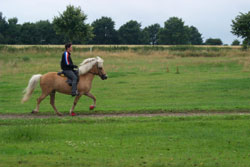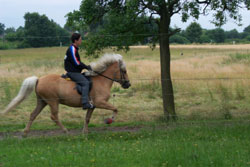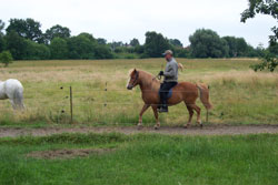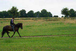 Die schwierigste Übung für Vaka, Nase runter! Hier gelingt es Elke ganz gut im Trab. Leider blieb sie nie sehr lange in dieser Haltung. So haben wir noch eine ordentliche Arbeit vor uns.