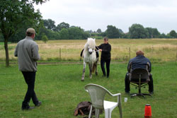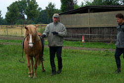 Am Freitag begann der Lehrgang mit dem Vorstellen der einzelnen Pferde. Reynir ließ sie sich auf der Ovalbahn vorreiten und probierte dann alle selbst aus. So das er sich von jedem Pferd ein Bild machen und den Ausbildungsstand feststellen konnte. Schon hier am ersten Tag gab es eine Menge Tipps für die weitere Arbeit mit den Pferden.