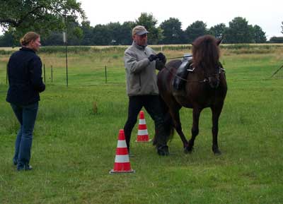 Das Pferd kann sowohl mit der Stimme als auch mit der Gerte angetrieben oder