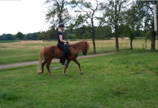 Da gab es schon so einige Schwierigkeiten, die aber bewältigt wurden. Bahnfiguren und Töltübungen wurden dann auf der und in der Ovalbahn geritten und geprüft.
