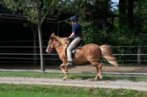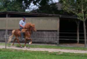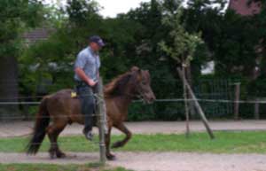 In den folgenden Tagen war richtig Arbeit angesagt. Morgens im Roundpen und nachmittags auf der Ovalbahn. Bei heißem Sommerwetter haben alle gut geschwitzt, Pferde, Reiter und auch Reynir, der unermüdlich erklärte und verbesserte.